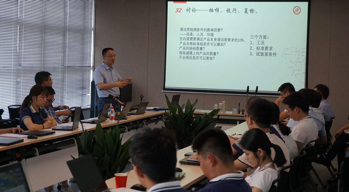 本次技术交流由我司的宋盛经理及阅美测量系统(上海)有限公司的王磊经理主讲,常州坤泰的SQE,质量检测部门等技术人员共计35人一起参加讨论。围绕日常使用遇到的常见问题,清洁度检测的发展趋势大家展开了热烈的讨论。